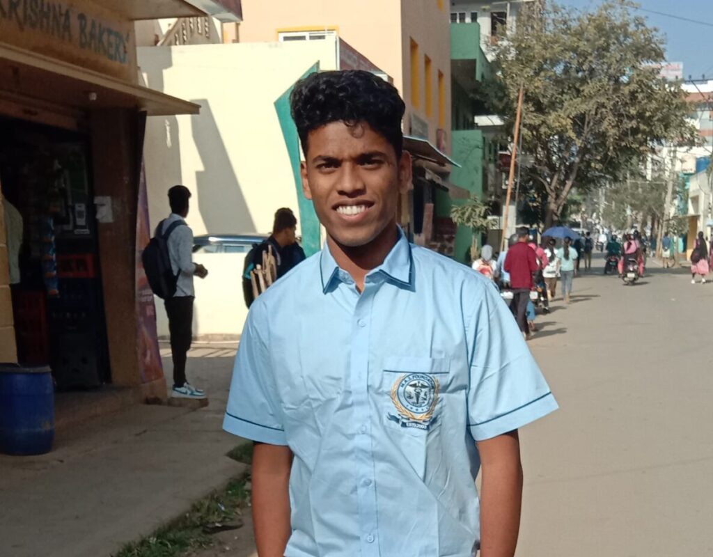 Abhijith joined Blossom Projects in 2022 after a traumatic childhood marked by domestic violence and instability. Brought by a teacher after 10th grade, he completed the two-year Plus Two program, where his kind, caring nature stood out—often tending to sick students. Guided by the Blossom team, he pursued a nursing degree at Dhanwantari Group of Institutions in Bangalore. Abhijith has since recruited two more students, creating a ripple effect. Grateful for the support he received, he remains closely connected to the Blossom community.